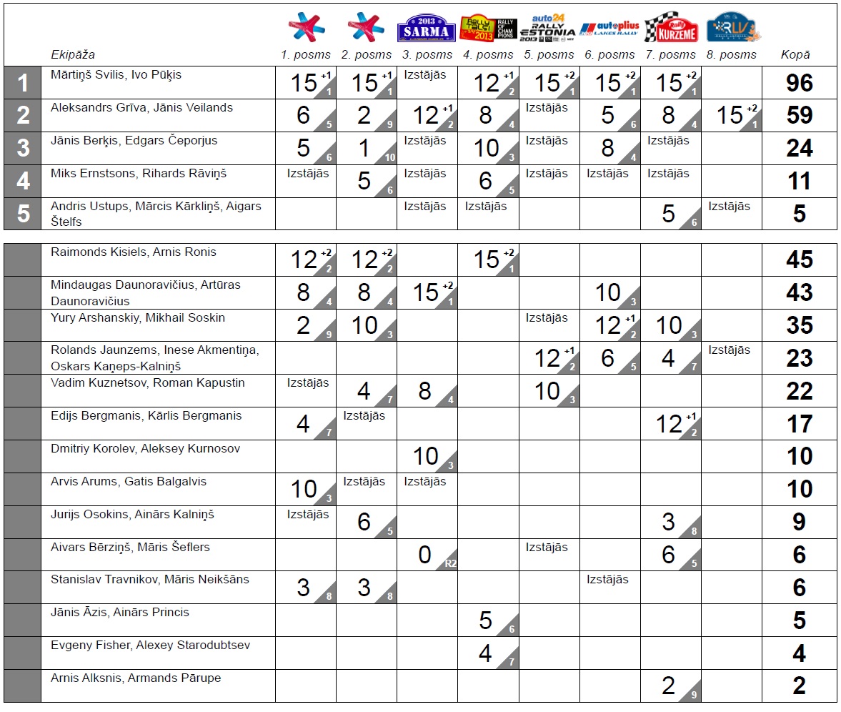 2013. gada Latvijas rallija čempionāta sezonas kopvērtējuma rezultāti A+ grupā