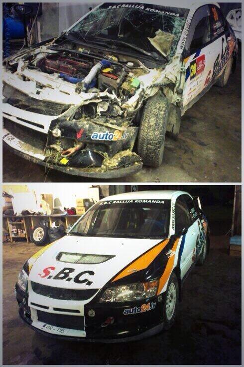"Vēlos pateikt - paldies visiem, kuri palīdzēja, atbalstīja un sadarbojās ar S.B.C. Rallija Komandu, lai atjaunotu mūsu auto 2 nedēļu laikā pēc avārijas, kas notika Auto24 Rally Estonia otrajā ātrumposmā, kur vienā no līkumiem apgāzāmies uz jumta un to sabojājām.